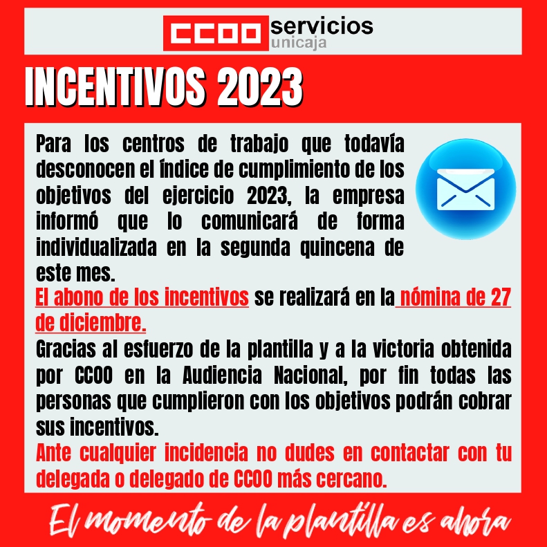 Para los centros de trabajo que todavía desconocen el índice de cumplimiento de los objetivos del ejercicio 2023, la empresa informó que lo comunicaría de forma individualizada en la segunda quincena de este mes.