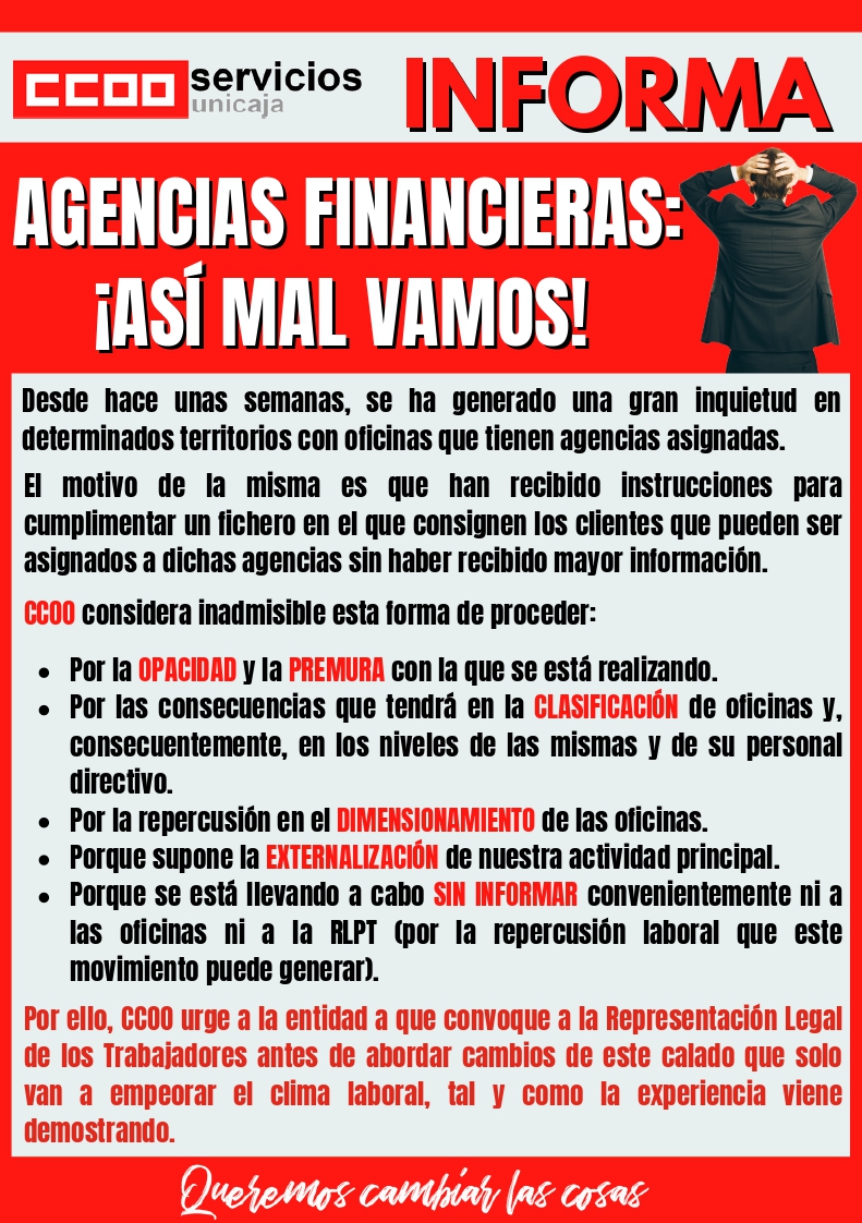 AGENCIAS FINANCIERAS: ¡ASÍ MAL VAMOS!