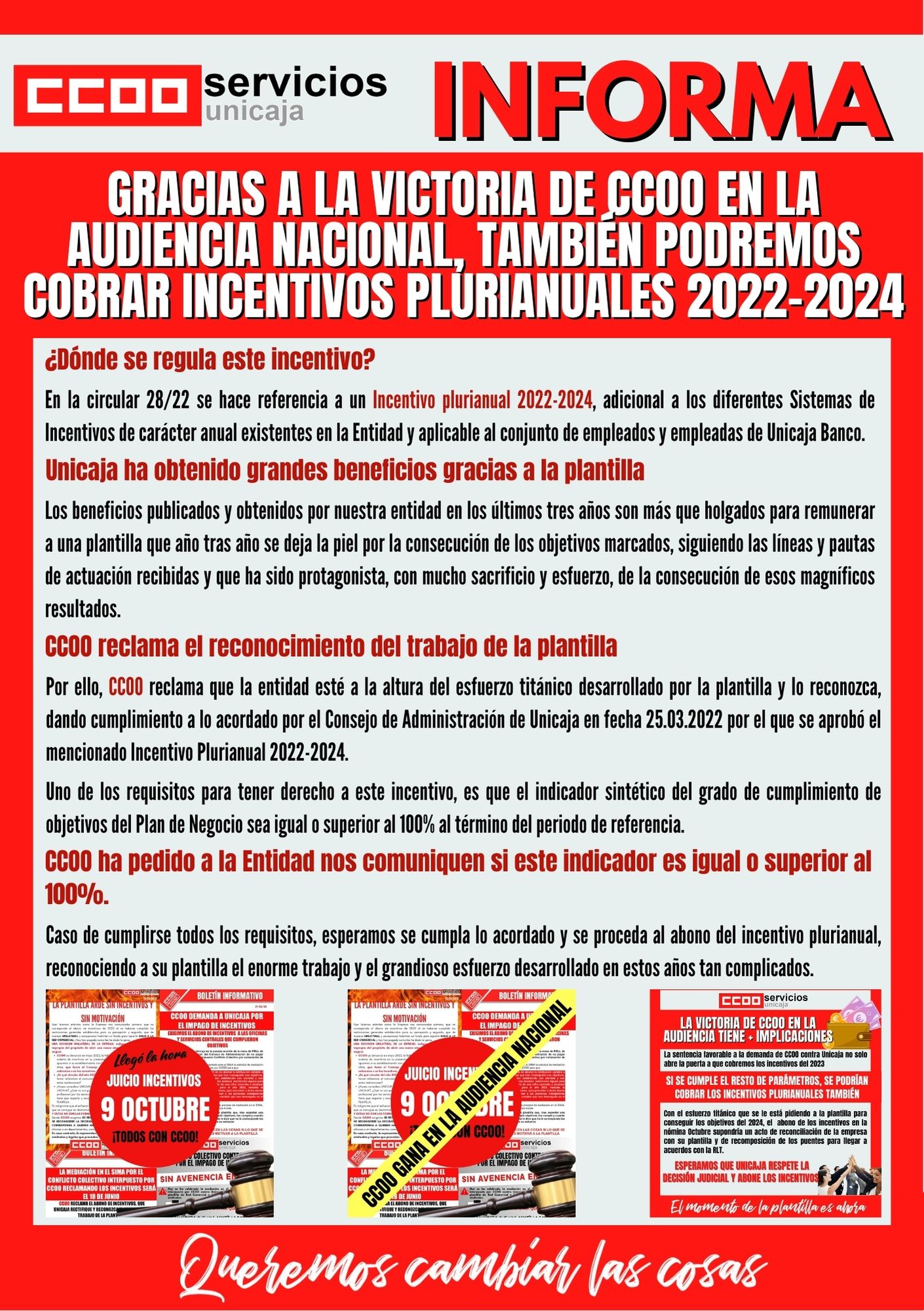 GRACIAS A LA VICTORIA DE CCOO EN LA AUDIENCIA NACIONAL, TAMBIÉN PODREMOS COBRAR INCENTIVOS PLURIANUALES 2022-2024