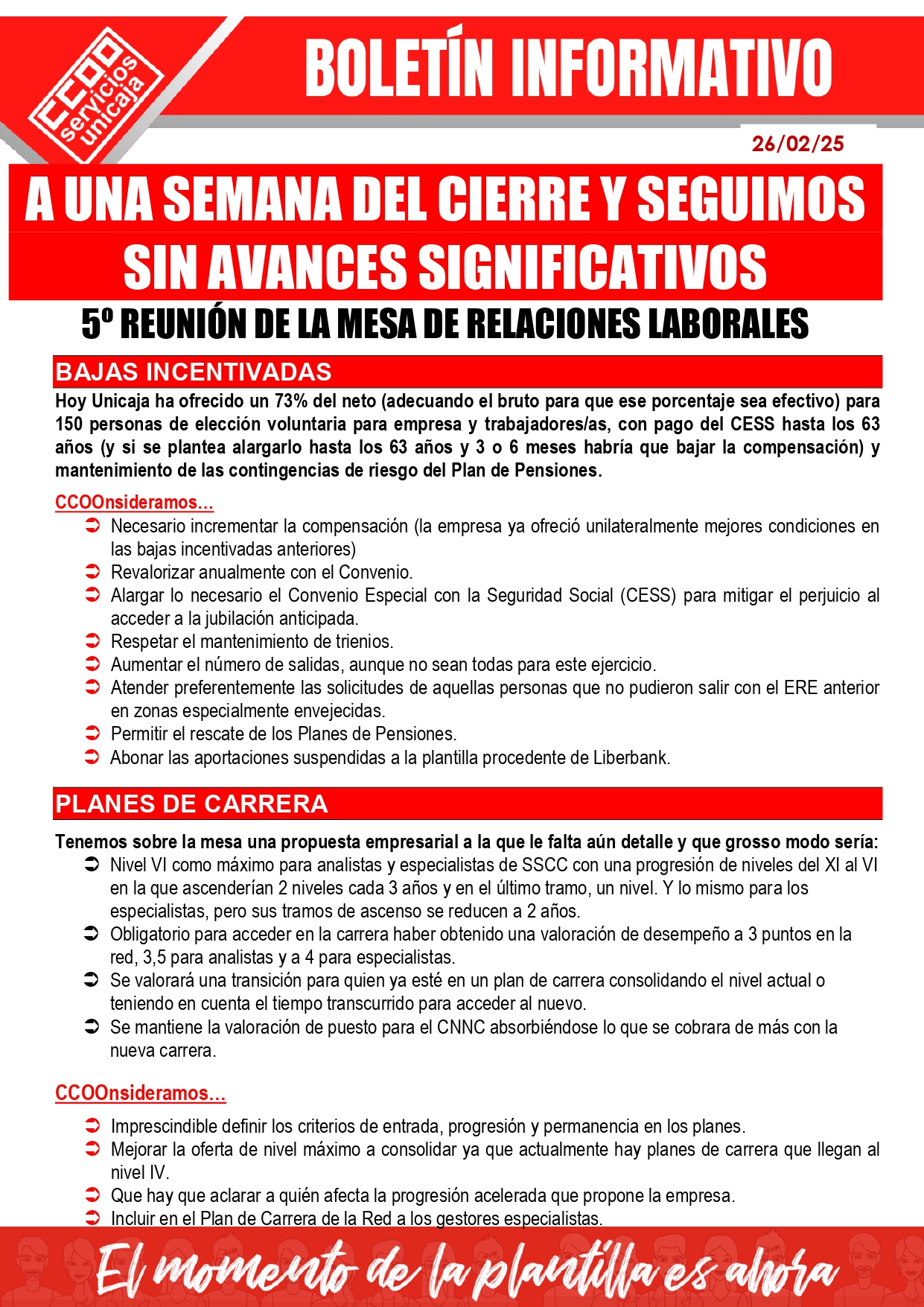 5ª REUNIÓN DE PROCESO DE NEGOCIACIÓN A una semana del cierre y seguimos sin avances significativos.