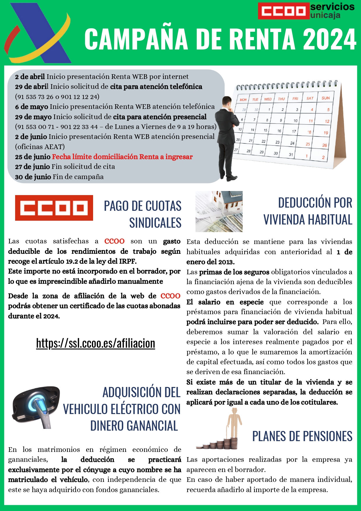 Conoce el calendario de la campaña de IRPF 2024, cómo deducir la cuota sindical, …