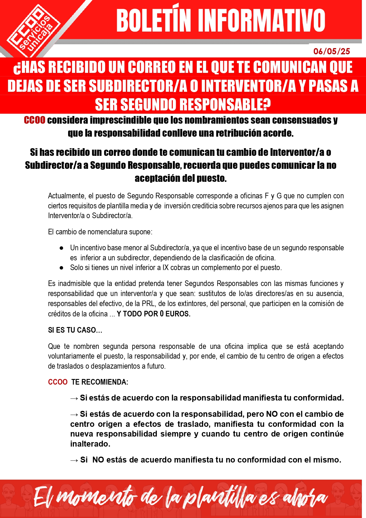 ¿HAS RECIBIDO UN CORREO EN EL QUE TE COMUNICAN QUE DEJAS DE SER SUBDIRECTOR/A O INTERVENTOR/A Y PASAS A SER SEGUNDO RESPONSABLE?