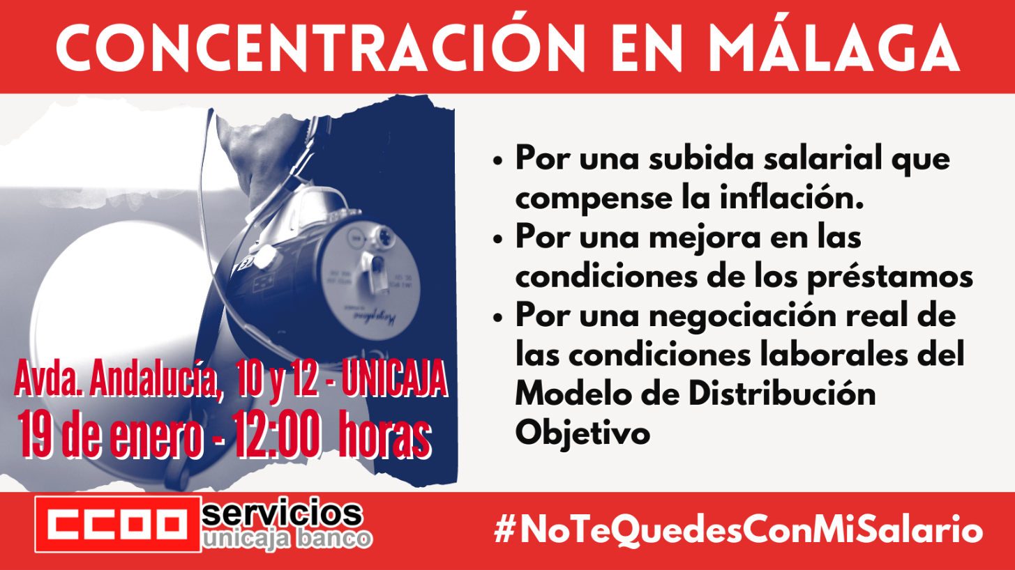 CCOO CONVOCA MOVILIZACIONES PARA EXIGIR UNA REVISIÓN DEL SALARIO, DE LOS PRÉSTAMOS Y QUE UNICAJA NEGOCIE CON LA RLT EL NUEVO MODELO DE DISTRIBUCIÓN OBJETIVO.