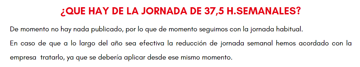 También os informamos de la posible reducción de jornada semanal.