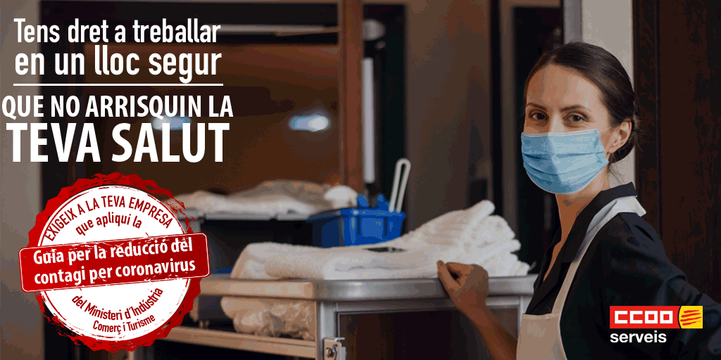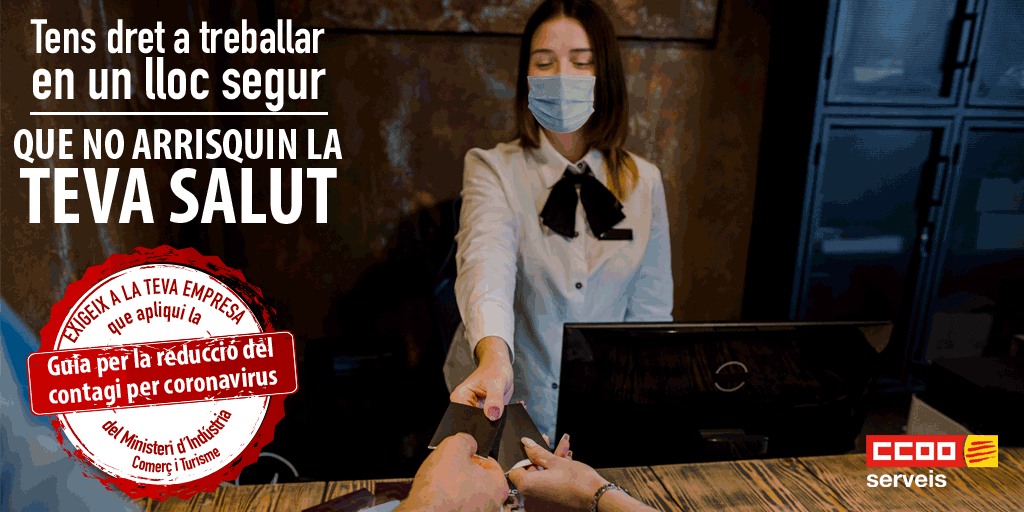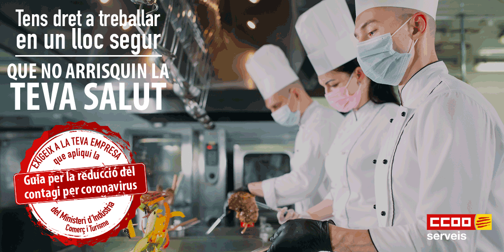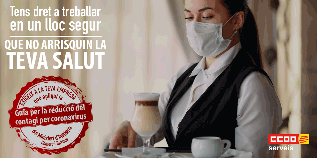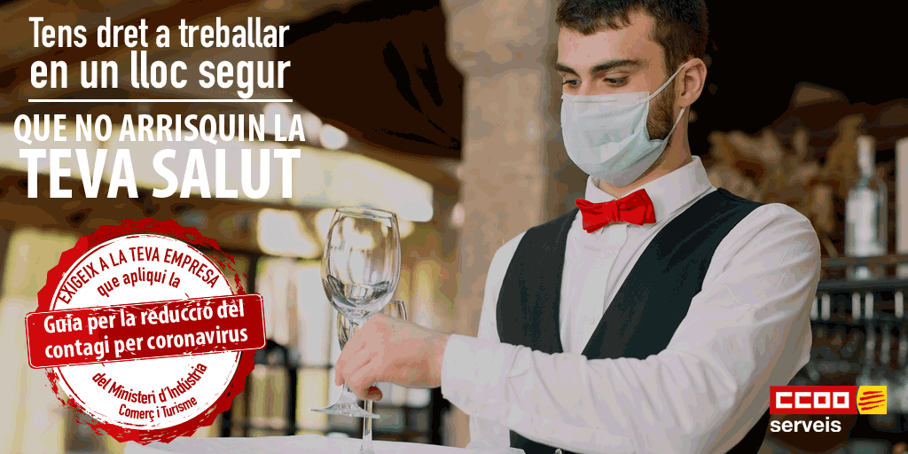 Tant clients com plantilles dels establiments d'hostaleria han d'exigir que es compleixin les guies de recomanacions per evitar el contagi per coronavirus que el ministeri ha elaborat en col·laboració amb administracions autonòmiques i locals, experts, patronals i sindicats (CCOO Serveis ha estat molt activa en aquesta elaboració)