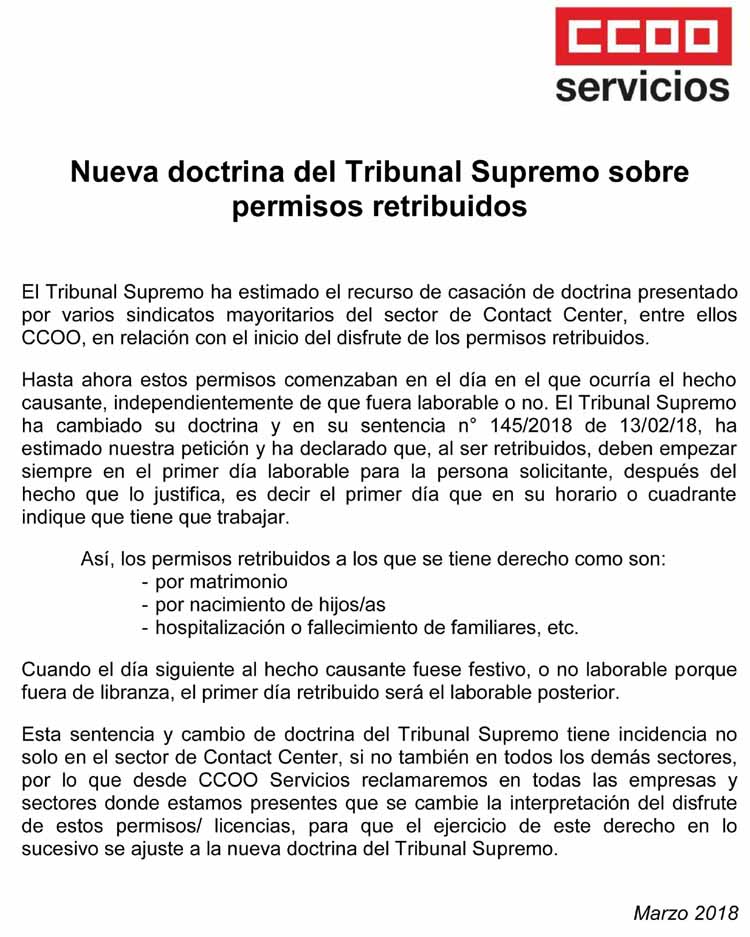 de Contact Center, entre ellos CCOO, en relación con el inicio del disfrute de
