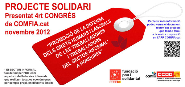 El pasado 6 de marzo en la Ejecutiva de COMFIA Catalunya de hemos podido contar con la presencia y participación de la compañera Esther Caballé de Pau y Solidaridad que nos ha explicado el cierre del proyecto de colaboración que se ha desarrollado desde el pasado congreso del 12 de noviembre de 2012 «Promoción de la defensa de los derechos humanos y laborales de las trabajadoras y trabajadores del sector informal* en Honduras».