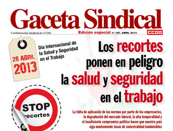 | Con motivo de la celebración del próximo 28 de abril, del Día Internacional de la Salud y Seguridad en el Trabajo, se ha editado un nuevo número de la Gaceta Sindical, queriendo denunciar las terribles consecuencias que sobre la salud laboral, la prevención de riesgos y las condiciones de trabajo están teniendo la reforma laboral y los recortes impuestos por el Gobierno; así como la actitud de los empresarios al no considerar prioritarias las inversiones en prevención.