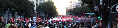 La ley ya está aprobada, pero a pesar de ello, consideramos que tenemos todavía la obligación moral, individual y colectiva, de decirle al Gobierno, al Parlamento y a Europa que no estamos de acuerdo; queremos que lo sepan y que den marcha atrás. Cuantas personas salieron a la calle a gritar que no querían estar en la guerra de Iraq, a sabiendas, de que entraríamos igualmente. El conjunto de la sociedad tenemos que acostumbrarnos de nuevo a tomar la calle para reclamar nuestros derechos, a decir públicamente lo que pensamos, porque si nos callamos, darán por buenas sus medidas y perderemos uno tras otro todos los derechos que tanto han costado conseguir. Queremos que reflexionéis pausadamente y valoréis la importancia de acudir al llamamiento a la huelga. Podremos justificarnos y encontrar miles de motivos para no secundar los paros: que no nos pagan ese día, que tomarán represalias contra nosotros, que se ha convocado demasiado tarde; pero por encima de todos esos motivos hay uno, en nuestra opinión, más importante. NUESTRO DERECHO A RECLAMAR AQUELLO QUE ES NUESTRO. QUE NOS LO DEVUELVAN. Y DECÍRSELO AL GOBIERNO CON GESTOS (huelga) y VOZ (manifestación). La fecha elegida tiene un motivo: Primero la que se ha podido, porque el Gobierno ha utilizado con alevosía y nocturnidad el verano para retrasarla y aprobarla lo antes posible en el Parlamento; y segunda, que sea a nivel europeo, ya que las reformas laborales han afectado, de una u otra manera, a toda la Eurozona y entre todos los ciudadanos europeos haremos más fuerza.