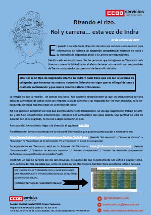 Datos de empleoDel análisis de los datos podemos extraer que la plantilla en Banco Santander se mantiene prácticamente en cifras muy similares a las del cierre de 2016, con un censo total a 31/08/2017 de 21.415 personas, de las que el 45,57% son mujeres. El 100% de los contratos celebrados en este período han sido indefinidos cumpliendo con los compromisos firmados por el Banco con CCOO y el resto de sindicatos en 2006.El Banco sostiene que la plantilla en estos momentos está ajustada, pero desde CCOO hemos insistido que es tal el grado de ajuste, que cualquier mínima contingencia convierte una plantilla ajustada en otra mermada y en precario.Presión Comercial de veranoEstas circunstancias se han visto agravadas el pasado verano, cuando a la escasez de plantilla, con una cobertura desigual en contrataciones temporales, se le ha unido una campaña especial de presiones por parte de zonas y territoriales, que no han vacilado en presionar, desde sus lugares de vacaciones, a las personas que se quedaban al frente de las unidades de negocio en el mes de agosto, que, con carácter general, no suelen tener un perfil comercial.Encuesta Global de compromiso 2017CCOO ha insistido ante la Encuesta Global del Compromiso 2017 que se está realizando en estos momentos, en que para garantizar la confidencialidad de la misma, hay que preservar que sus resultados no se utlicen contra las plantillas que participan en su elaboración. La mejora no se consigue presionando a quien participa.Meritocracia y trieniosCCOO también ha planteado en esta Comisión de Empleo la consulta de algunas personas que han accedido al programa de meritocracia ampliando su retribución con un complemento, que, para su sorpresa, se ha visto compensado y absorbido cuando ha devengado trienios de antigüedad.Esta circunstancia vuelve a dar la razón a CCOO cuando insistimos en que los conceptos retributivos que nacen de la negociación colectiva (Convenio Colectivo) tienen unas garantías de las que carecen aquellos que nacen de la ?voluntariedad? de la Empresa o de la negociación individual.Retribución variable y MIFID IIPor último, y también dentro del ámbito de las retribuciones, CCOO ha preguntado a la empresa por la fórmula que piensa adoptar a partir de la entrada en vigor de la normativa MIFID II el año que viene, ya que la retribución variable no podrá estar ligada a la venta de productos sujetos a MiFID II ni a la consecución de unos objetivos mínimos. Hay que recordar que en la actual evaluación del desempeño, la retribución variable vinculada a la consecución de objetivos todavía pesa el 60% del total.