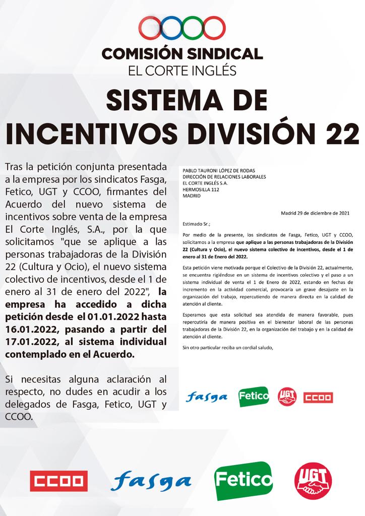 Tras la petición realizada por la Comisión Sindical sobre el Sitema de Incetivos de la Div 22, la empresa ha respondido favorablemente.