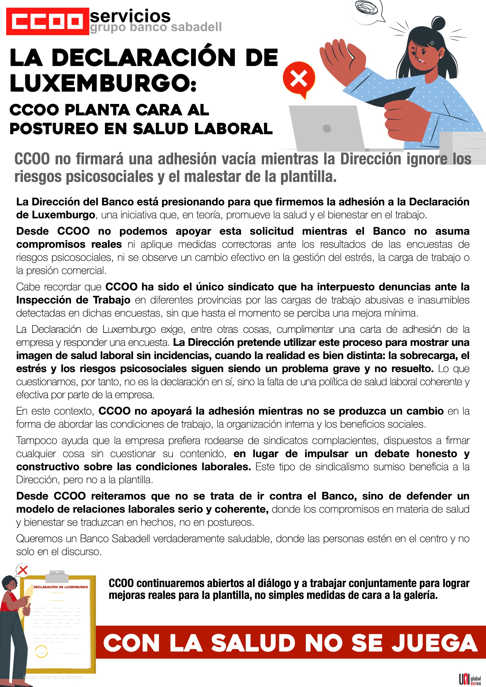 Ante la intranquilidad, el desánimo y la sensación de falta de confianza que ha provocado dicho comunicado en el equipo, nos hemos dirigido a la Dirección de Recursos Humanos.