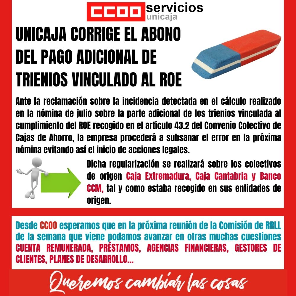 Desde CCOO queremos trasladar al conjunto de la plantilla nuestra inequívoca voluntad e intención de insistir en la necesidad de retomar la negociación del nuevo convenio colectivo, negociación que lamentablemente, lleva demasiado tiempo parada ante la falta de acuerdos, afectando con ello gravemente a nuestras condiciones, nuestros derechos y nuestro poder adquisitivo.