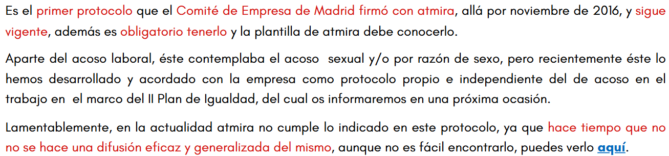 Entendemos que las circunstancias salariales, laborales y organizativas actuales exigen, después de casi 11 años del anterior convenio, un nuevo acuerdo que garantice unas condiciones justas, adecuadas y actualizadas a la realidad del momento. Por ello, solicitamos a la empresa nos sea comunicada la voluntad de que se retomen las reuniones de negociación y proponiendo para ello las fechas: 31 de octubre, 4 de noviembre o 6 de noviembre.