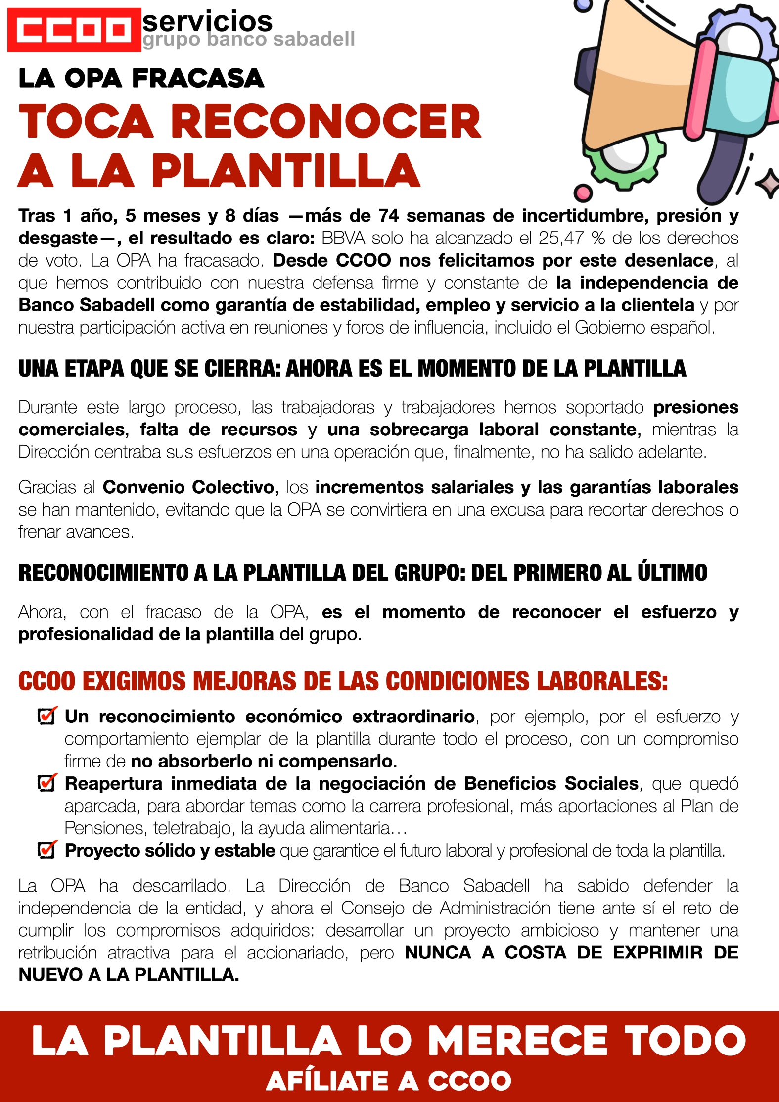 - Si trabajas en una oficina con representación de CCOO, podrás solicitarla a nuestro delegado o delegada sindical.