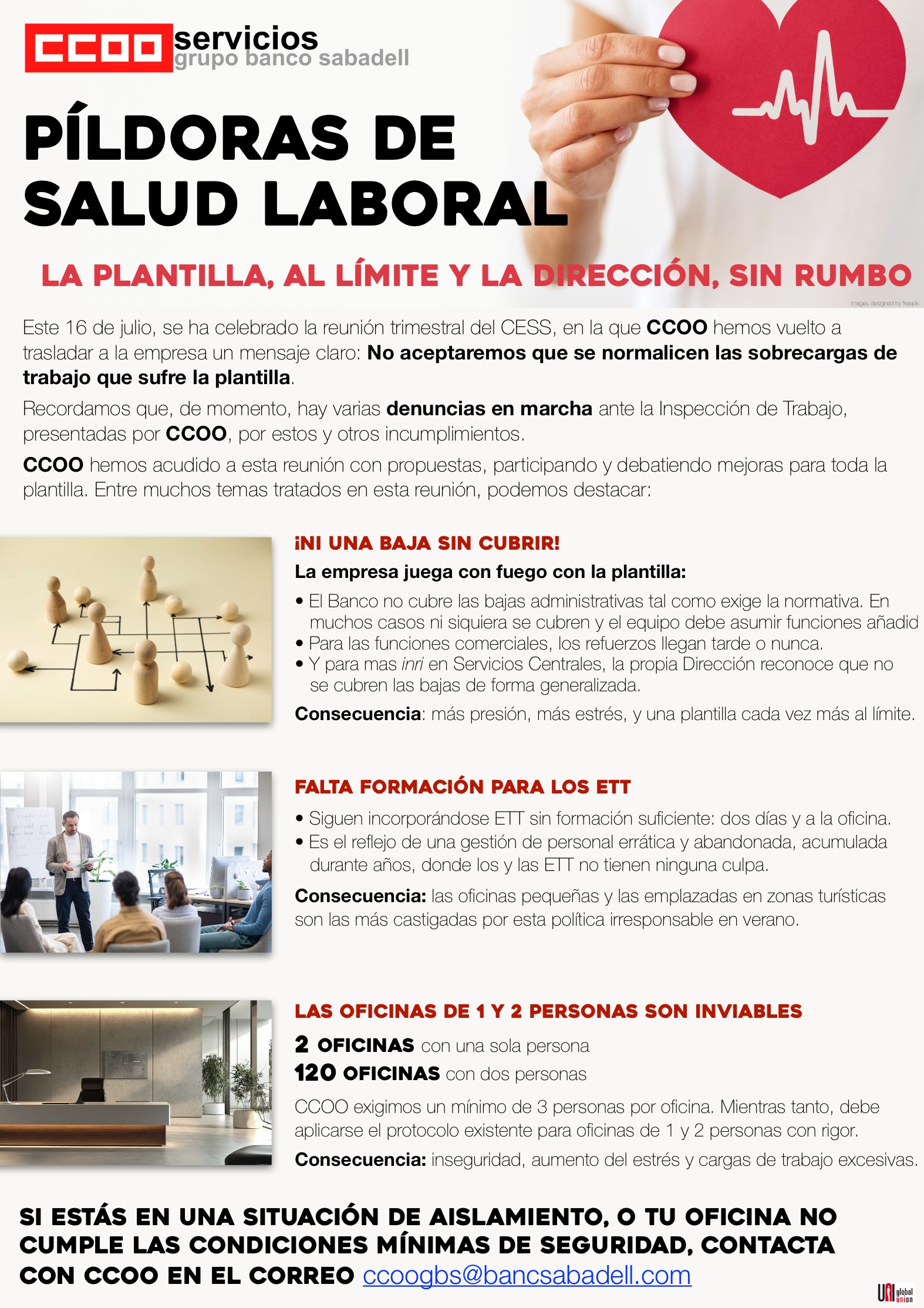 Ayer, se publicó la esperada circular sobre los Planes de Carrera, un modelo que llevamos esperando desde hace mucho tiempo y que, lamentablemente, ha visto la luz sin el respaldo de la necesaria negociación pese a todos los esfuerzos realizados por CCOO para que se avanzara y se consiguieran las mejores condiciones para toda la plantilla. La no firma del acuerdo por parte de otros sindicatos no puede ser una excusa para que la Entidad imponga un modelo que ignora por completo las mejoras y el espíritu de progreso que se plantearon en la negociación.