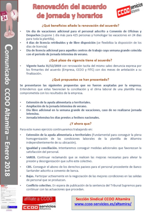 Ponemos en tu conocimiento la publicación de la Sentencia del Tribunal Supremo al Recurso de Casación presentado por la Sección Sindical CCOO Altamira.