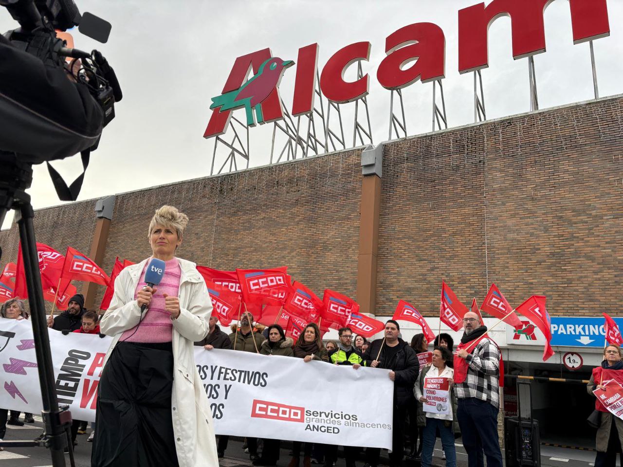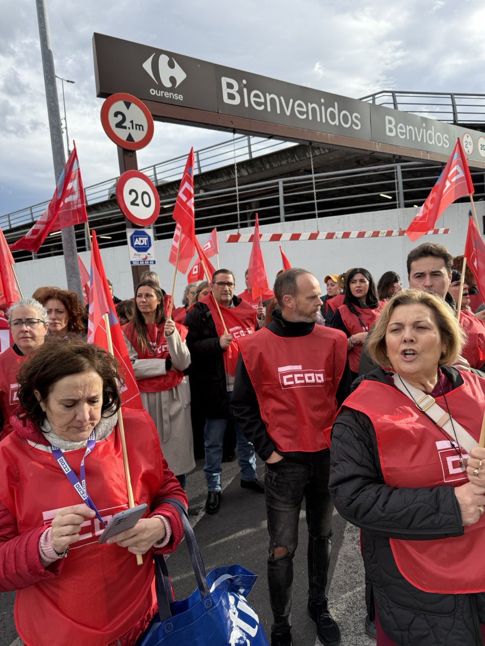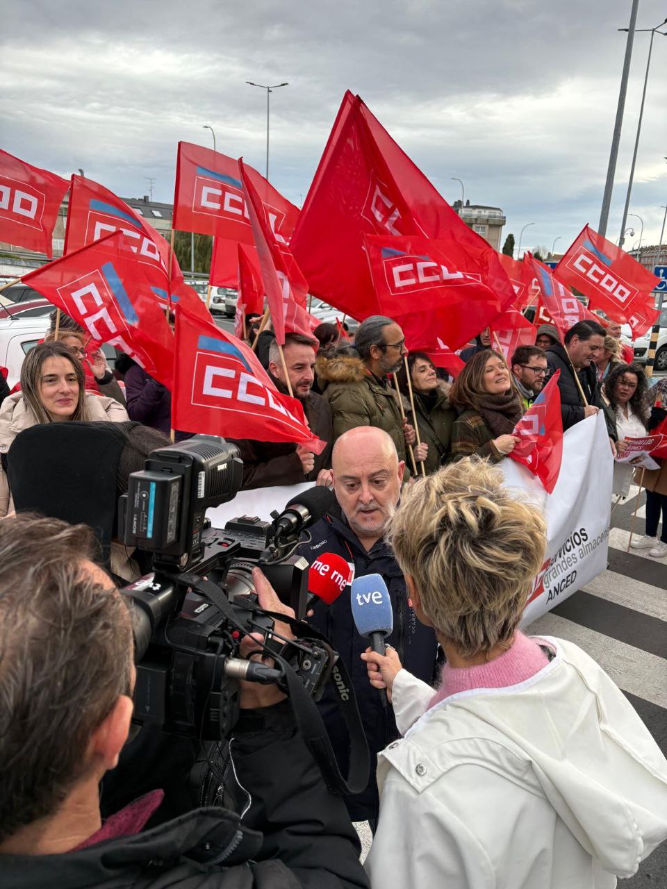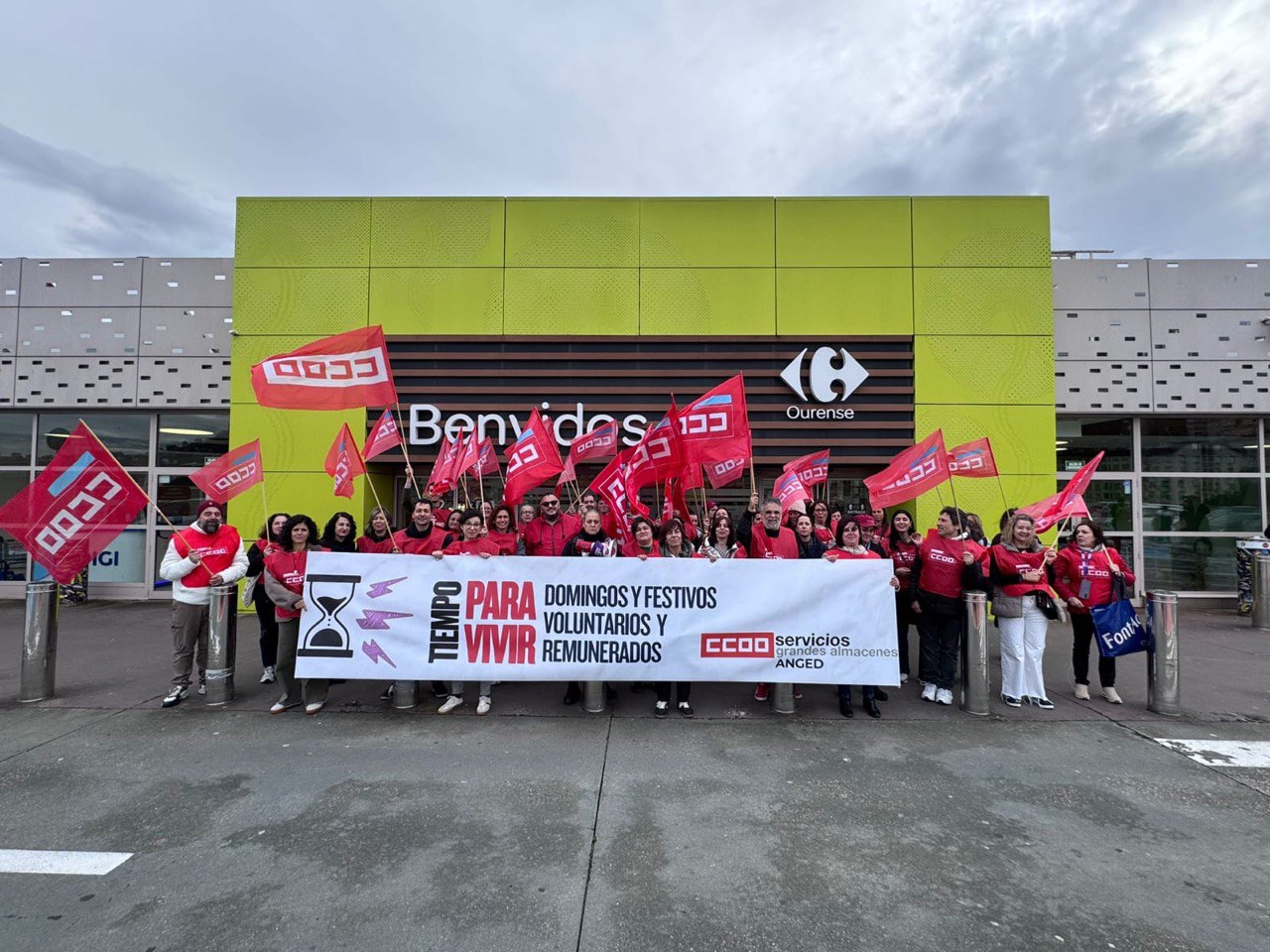 O persoal dos grandes almacéns protagonizou este xoves un Nadal vermello, con concentracións convocadas por CCOO Servizos en distintos puntos do Estado para reclamar melloras salariais, laborais e de conciliación. En Galicia, as protestas centráronse no Alcampo de Palavea (A Coruña) e no Carrefour de Ourense, cun amplo seguimento.