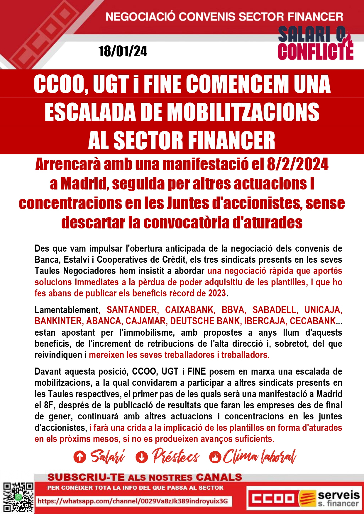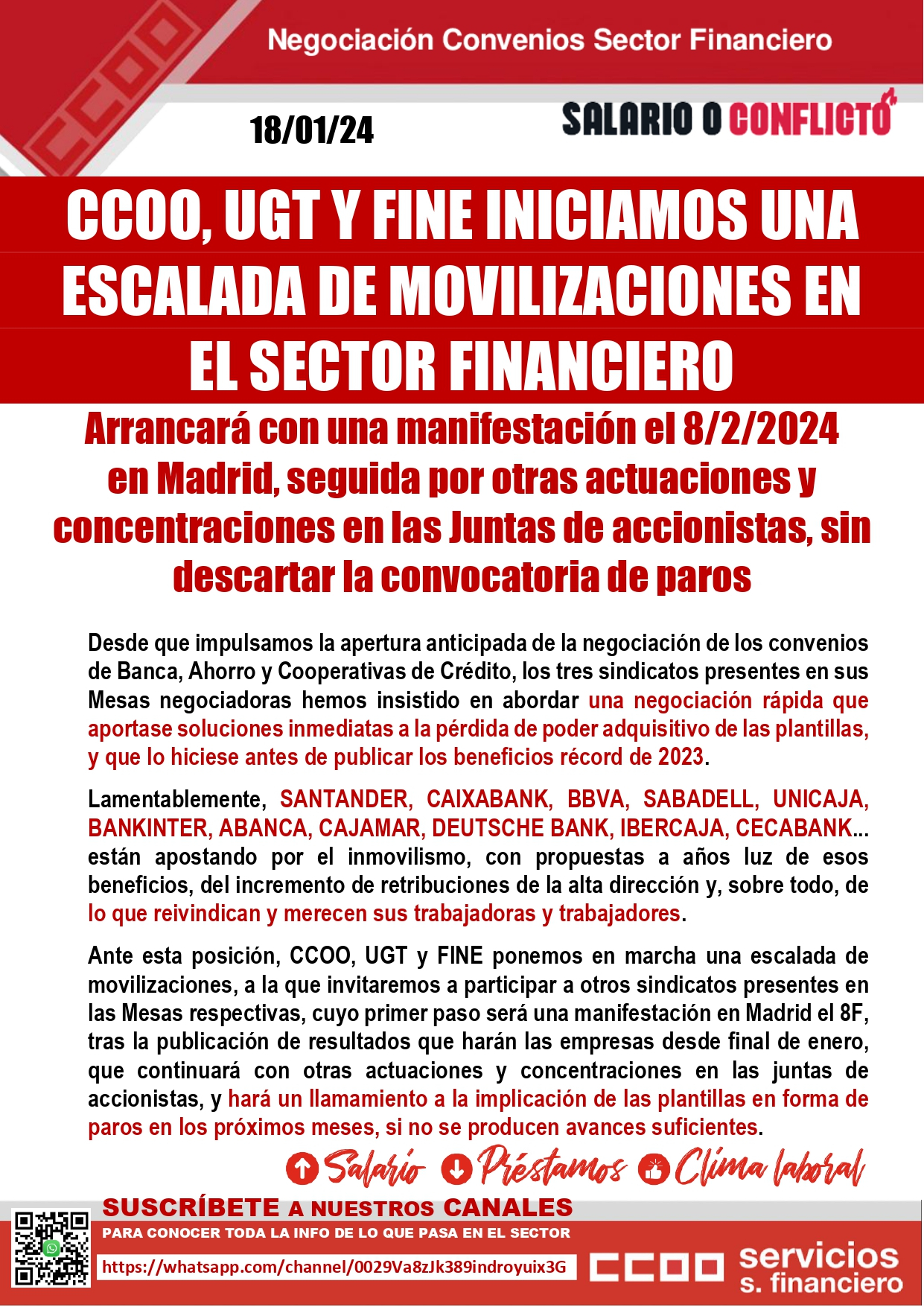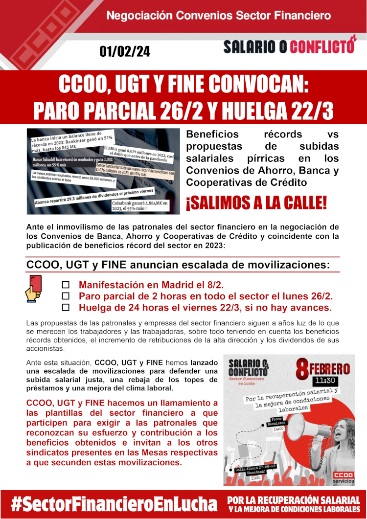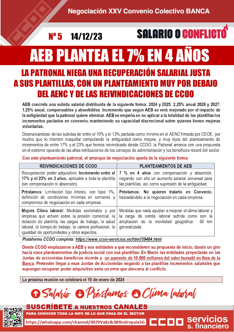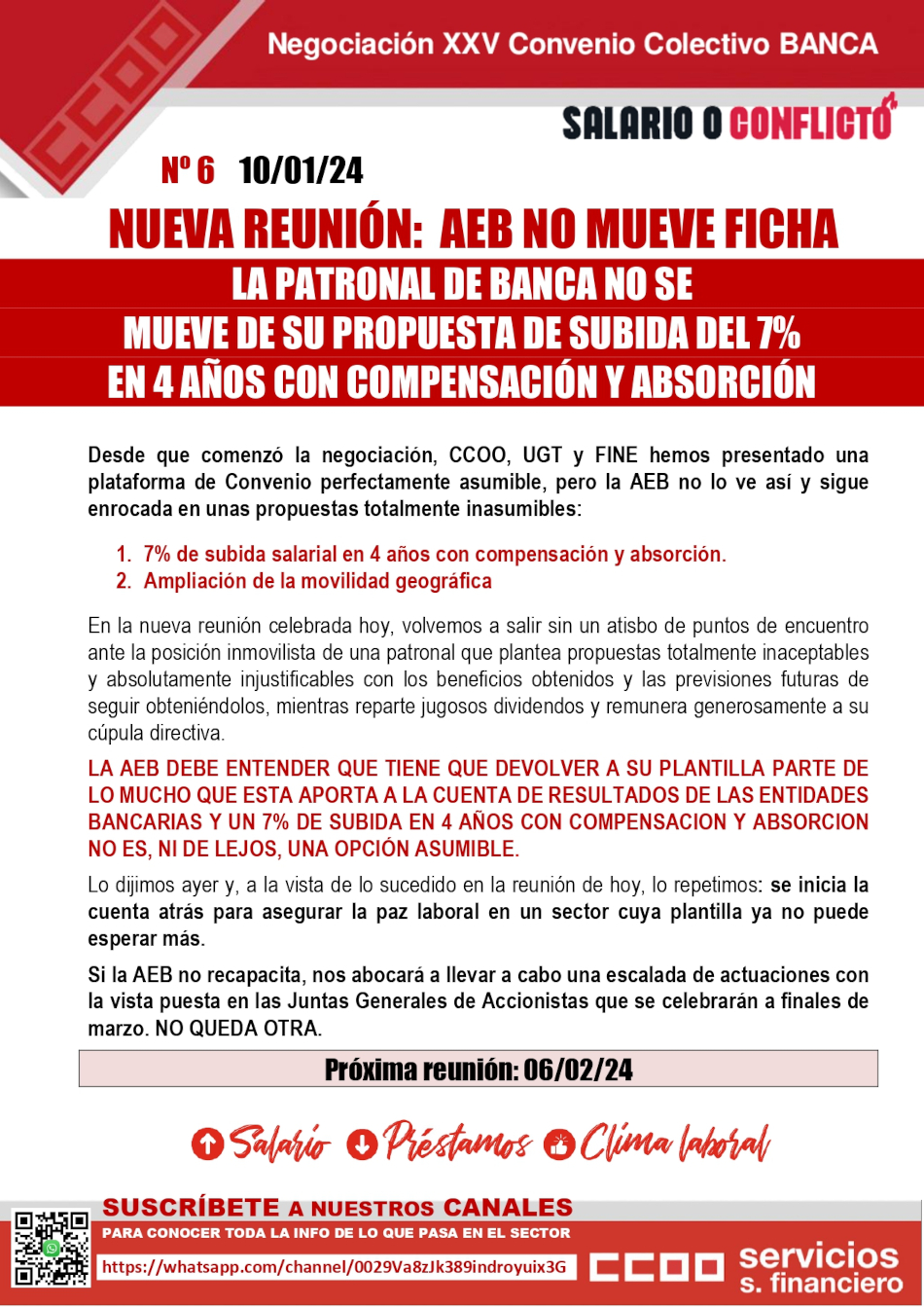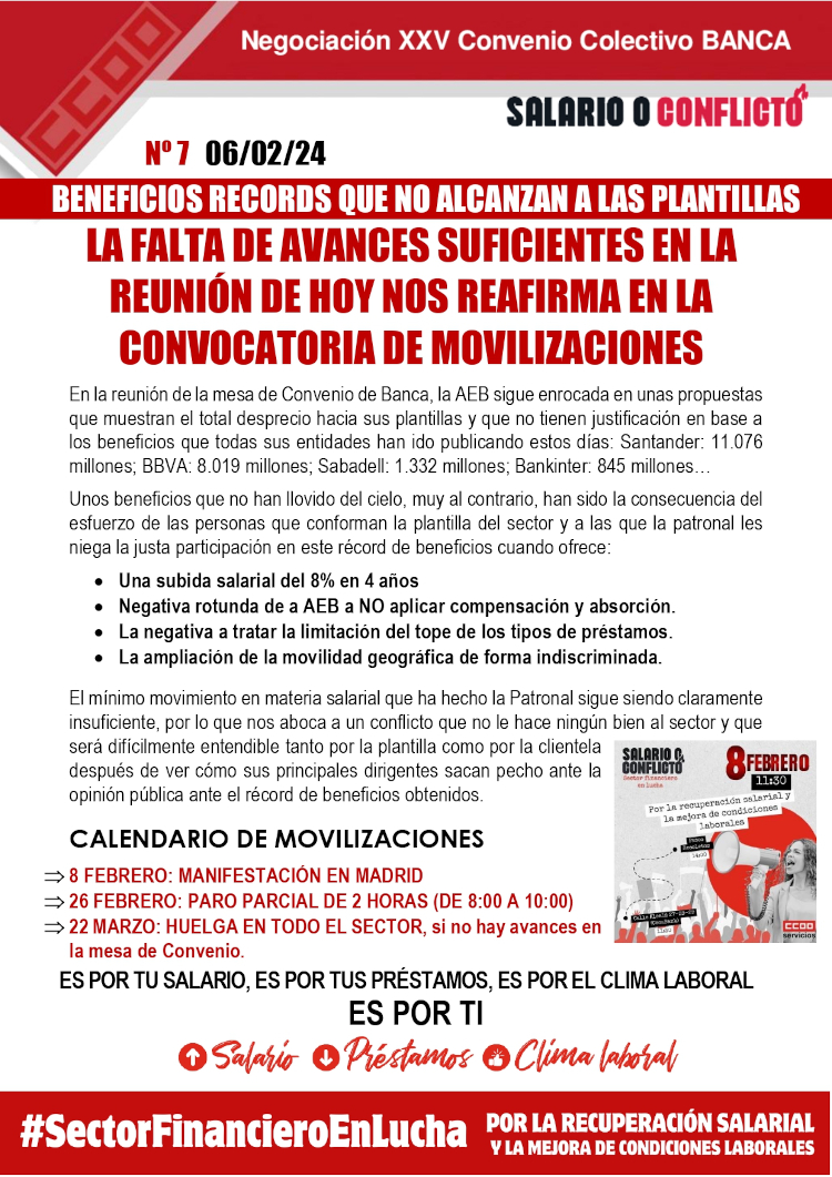 En la reunión de la mesa de Convenio de Banca, la AEB sigue enrocada en unas propuestas que muestran el total desprecio hacia sus plantillas y que no tienen justificación en base a los beneficios que todas sus entidades han ido publicando estos días BBVA: 8.019 millones.