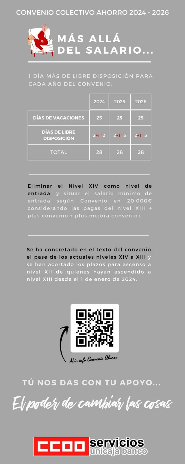 Pero esos preacuerdos, incluyendo el de Banca cuando lo consigamos, no serán un final, sino un principio: El principio de un cambio estructural, empresa a empresa, en el modelo de negocio y relaciones laborales, con medidas a abordar en cada entidad desde la negociación colectiva, para mejorar un clima laboral insostenible, que afronte la presión comercial, las cargas de trabajo, el impacto sobre la salud y los modelos retributivos. CCOO y las plantillas lo hemos dicho alto y claro en las juntas de accionistas de BBVA, Caixabank, Santander… y en la calle, en estas semanas que hemos mostrado nuestra capacidad de movilización: Estamos en Lucha por un Modelo Laboral Sostenible en el Sector Financiero.