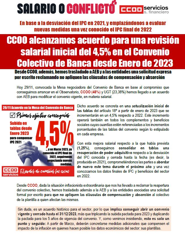Cabe destacar que desde el nacimiento del convenio nunca habíamos podido acordar un incremento salarial de tal envergadura, más si cabe, manteniendo derechos ya conquistados como el complemento del 100% de la IT.