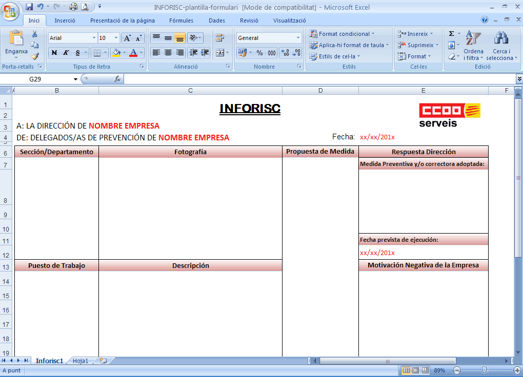corregirlas, CCOO propone una serie de medidas de actuación, entre las que