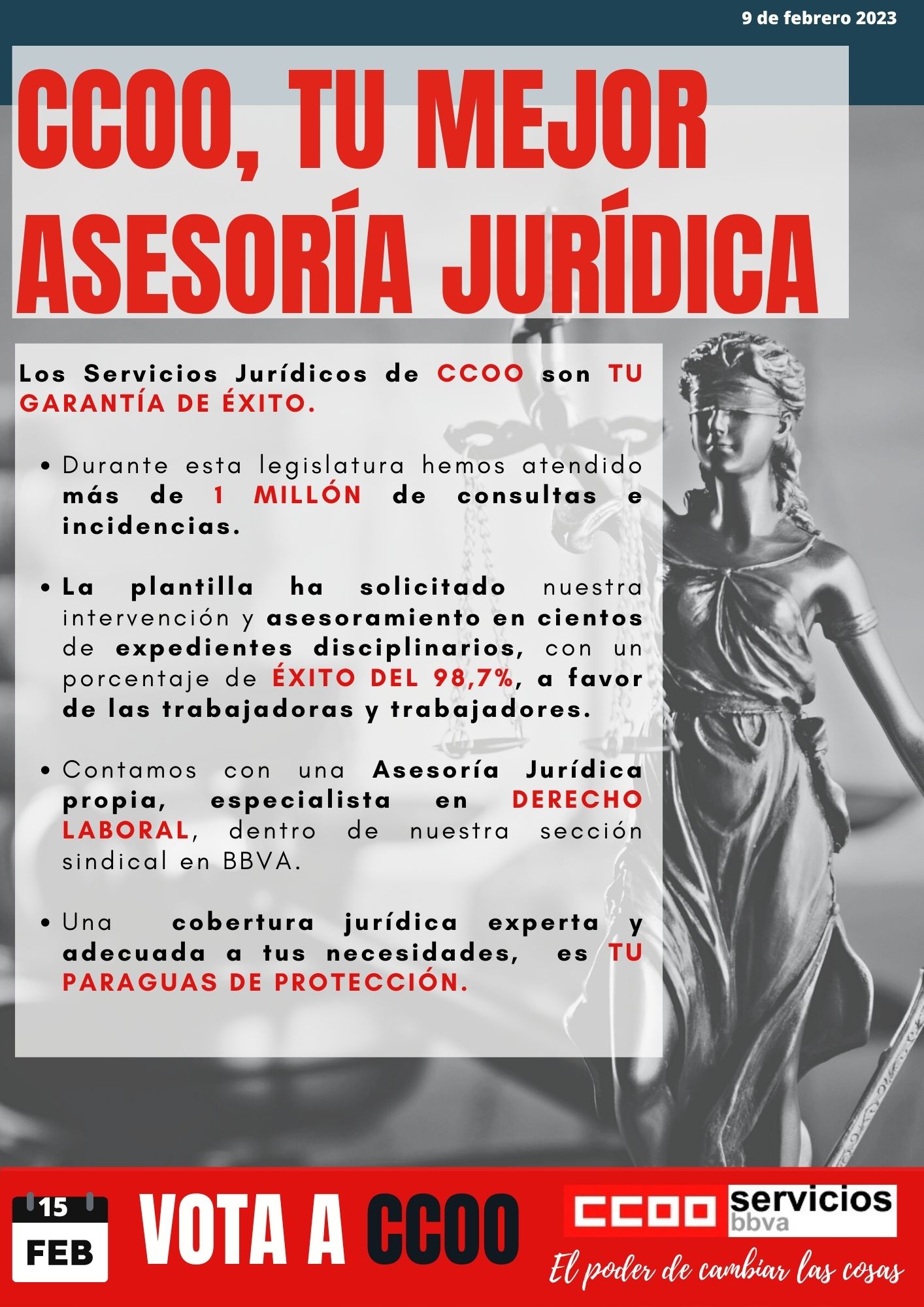 CCOO revalida su mayoría sindical en las elecciones celebradas el 15 de febrero en las entidades Banco Santander, BBVA, Banco Sabadell, Bantierra y Caja Rural de Teruel en las tres provincias de Aragón