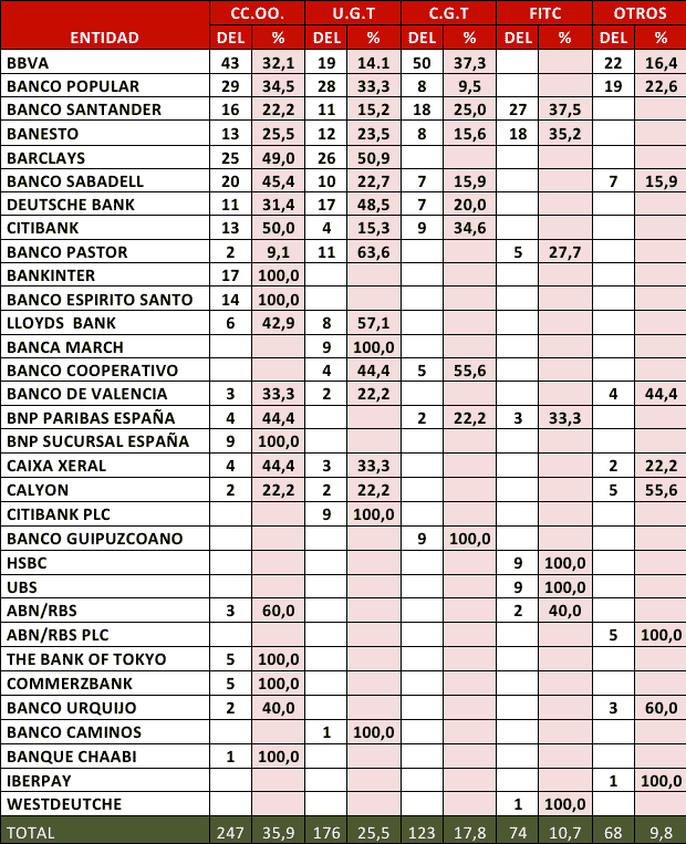 Destacar también que del total de delegadas/os con que contamos en Citibank, la mitad son delegadas lo que demuestra que esta Sección Sindical de CC.OO. es el único sindicato en Citibank que ha conseguido mantener la paridad real entre hombres y mujeres (que ya se reflejaba en nuestras candidaturas) en los delegados y delegadas que han resultado elegidos.