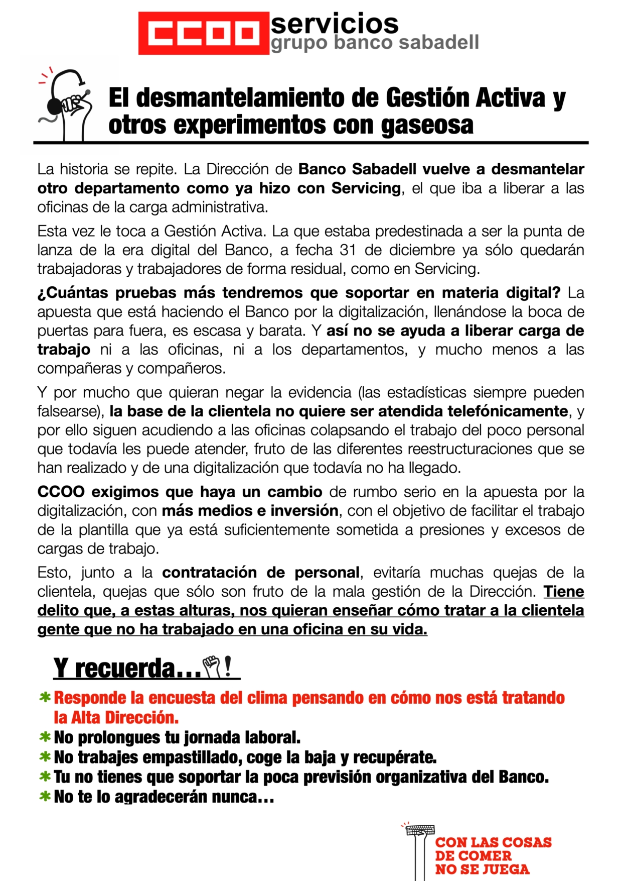 CCOO mostra el seu rebuig a una nova mesura per ajustar la plantilla a Indra on queden afectades 56 persones treballadores d’Indra Business Process Outsourcing (BPO) i la direcció no mostra cap interès en cercar recolocacions en altres serveis, no ofereix un pla de formació i no accepta la voluntarietat per a les possibles sortides per aquest col·lectiu, tot i que ho ha vingut fent en els darrers mesos i on l’empresa està actualment publicitant noves ofertes de treball.
