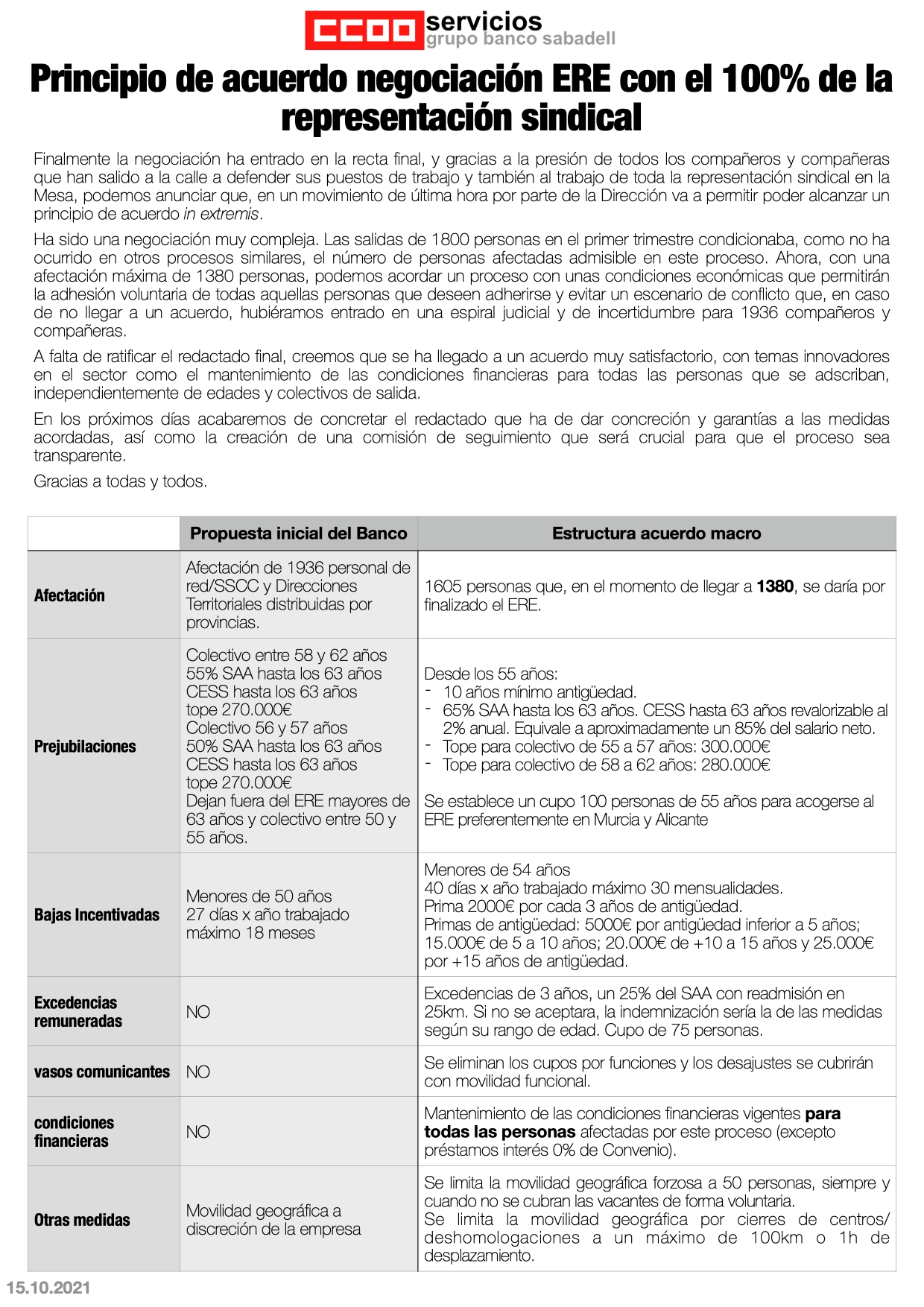 Después de dos reuniones celebradas, la posibilidad de una solución negociada está muy lejos, la empresa tiene que replantearse el ERE presentado y en todo caso ajustarlo a la ley y la situación real de la empresa, teniendo presente que no se puede pretender utilizar la excusa de la pandemia para justificar el “todo vale” de la empresa con el fin de especular, para CCOO la máxima de garantizar la continuidad del empleo y “no dejar nadie atrás” siempre será nuestra prioridad.