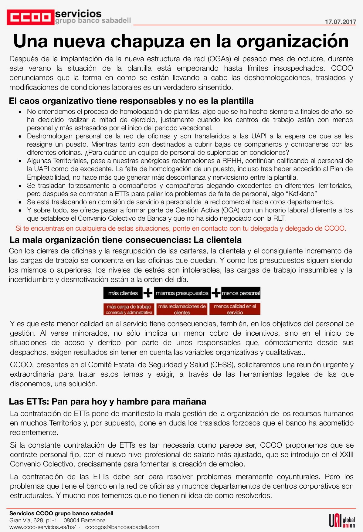 CCOO ya anunciamos en el