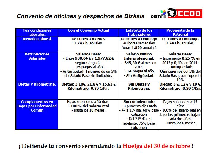 La reforma aprobada en julio de 2012 (ley 3/2012) dinamitó las relaciones laborales en nuestro país pues, con la crisis como excusa, ha concedido al empresariado un poder casi ilimitado. Entre otras cuestiones, dicha ley establece que «transcurrido un año desde la denuncia del convenio colectivo sin que se haya acordado un nuevo convenio o dictado un laudo arbitral, aquél perderá, salvo pacto en contrario, vigencia y se aplicará, si lo hubiere, el convenio colectivo de ámbito superior que fuera de aplicación.» Esto significa que, si no alcanzamos antes un acuerdo, el próximo 15 de diciembre quedará derogado el convenio de oficinas y despachos de Bizkaia.