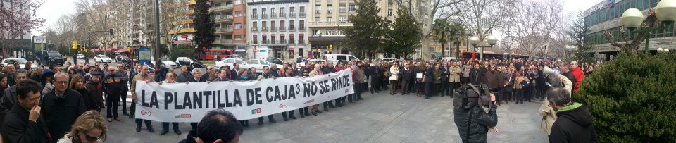 Caja3 se han concentrado frente a la puerta principal de Ibercaja, entidad que