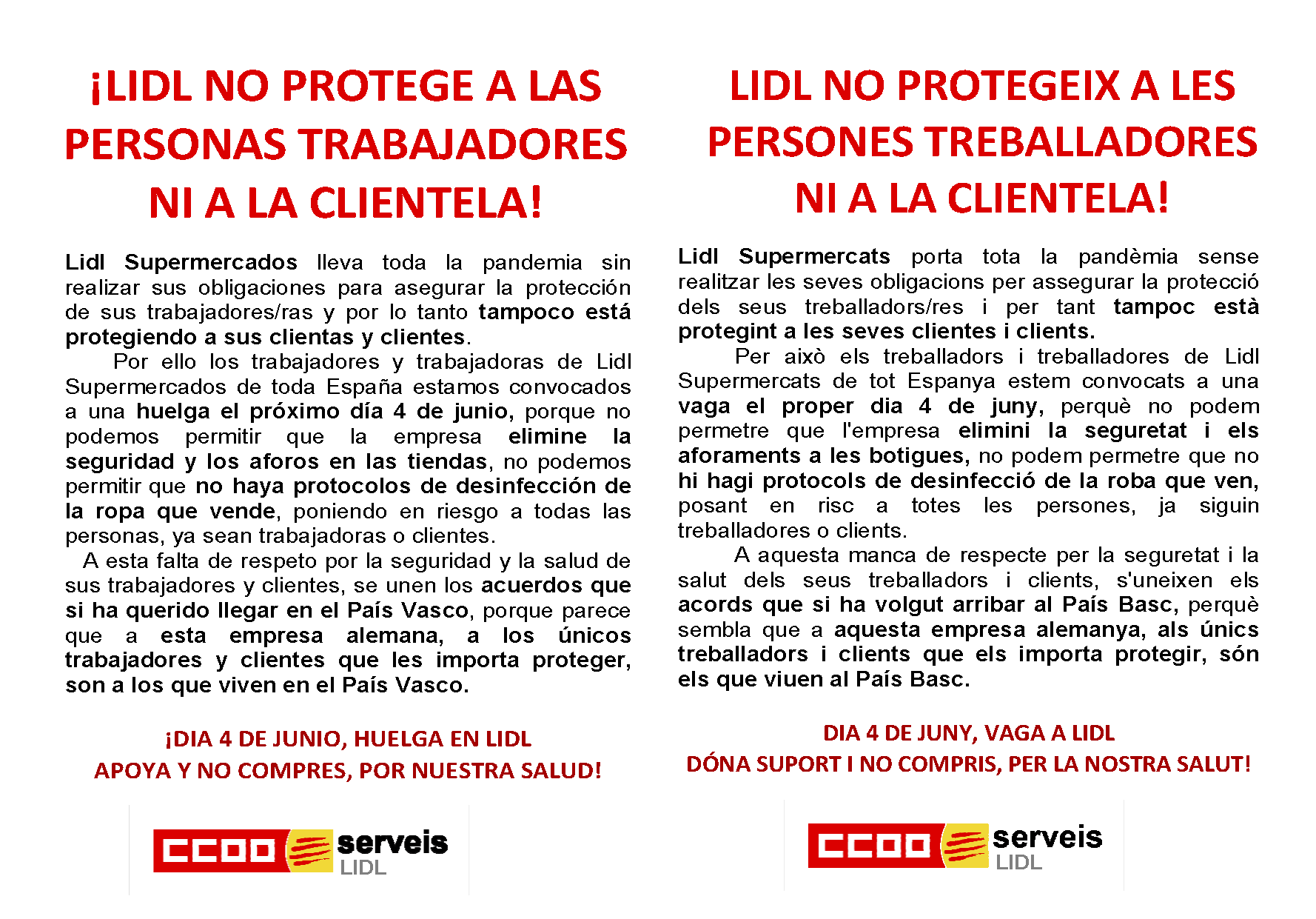 La Federación de Servicios de CCOO estarán del lado de los trabajadores y trabajadoras en cada uno de estos actos, con la intención de no dejar que falten al respeto a la plantilla