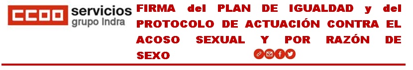 El 14 de enero de 2020 hemos firmado en Indra Soluciones TI el Plan de Igualdad y el Protocolo de Actuación contra el Acoso Sexual y por Razón de Sexo, que estará vigente durante los próximos 4 años.