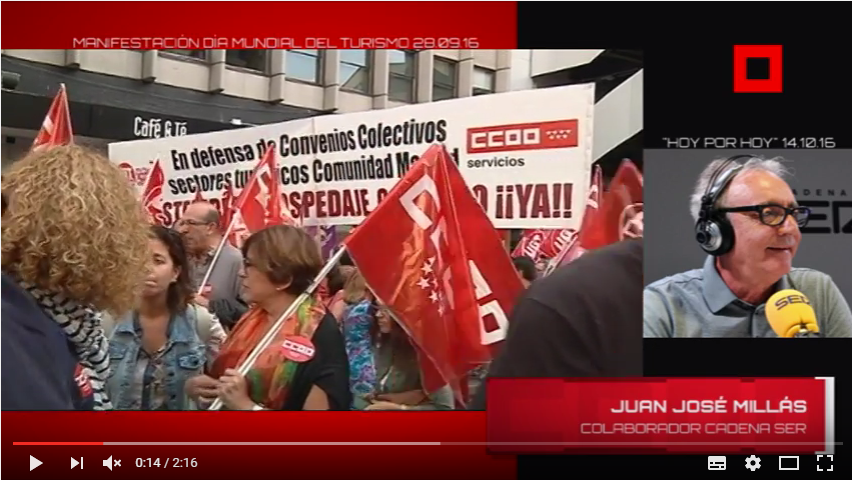 Comisiones Obreras exige el derecho de réplica a la Cadena SER ante las opiniones expresadas por su colaborador Juan José Millás cuestionando el apoyo incondicional del sindicato hacia las camareras de piso. [Ver vídeo]