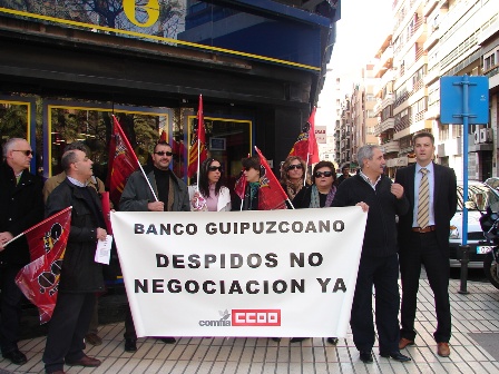 El lunes16 de Febrero, Delegados de la Sección Sindical del Banco Guipuzocano y de COMFIA de Alicante, han realizado una protesta ante esta entidad, contra los despidos que se estan produciendo en la misma