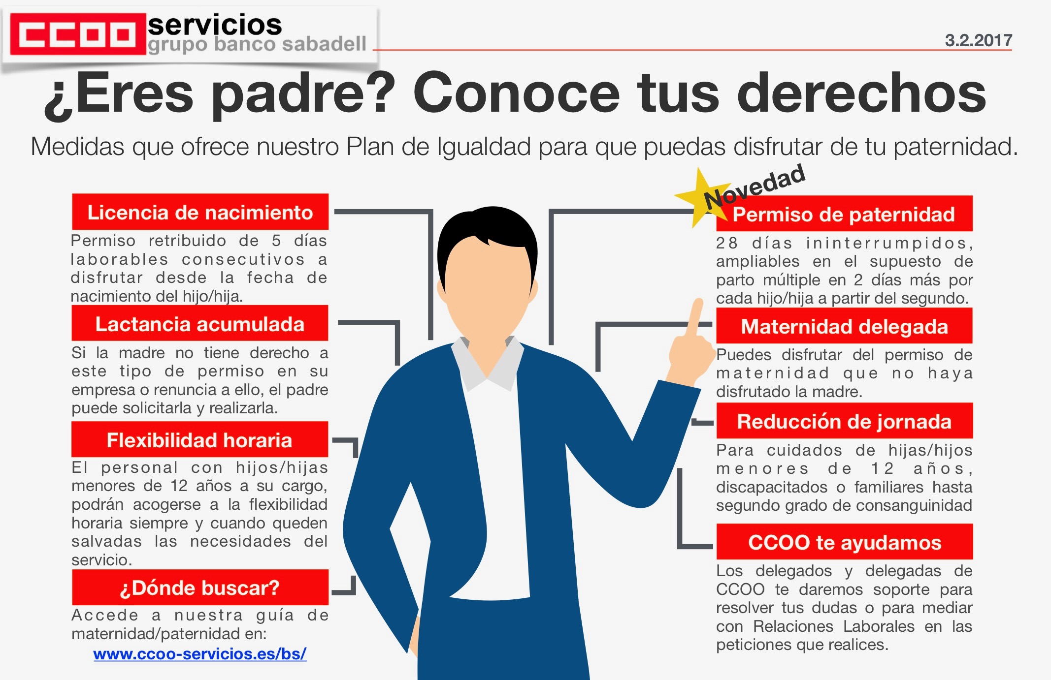 El compromiso de CCOO con la igualdad de oportunidades, la Conciliación de la Vida Familiar y Laboral y la protección contra cualquier tipo de acoso es irrenunciable. Hemos sido el Sindicato que no ha aceptado un acuerdo que no incluyese mejoras reales en esos tres aspectos, hemos preferido estar tres años negociando que firmar cualquier tipo de acuerdo. Gracias a la mayoría que nos habéis depositado hemos podido cumplir con unos objetivos aceptables pese al intento de la Empresa de poner en nuestra contra a los otros dos sindicatos que ya estaban de acuerdo con las primeras propuestas de la misma.