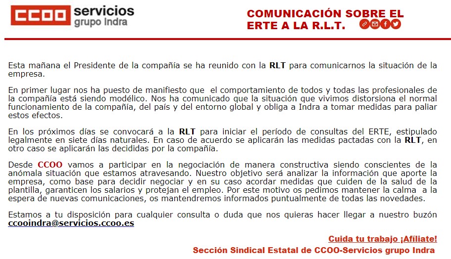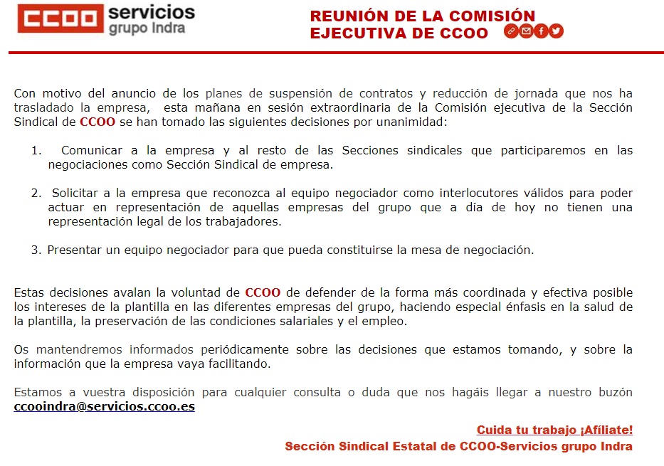 Sección Sindical Estatal de CCOO-Servicios grupo Indra