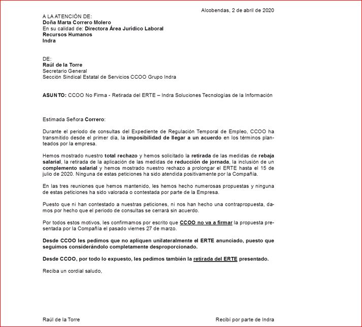 Os seguiremos informando. Para cualquier duda os atenderemos en nuestro buzón ccooindra@servicios.ccoo.es