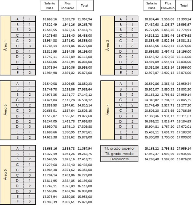 - ANEXO I: La Tabla salarial definitiva. Año 2023, que incluye las tablas y conceptos salariales resultantes de aplicar un incremento salarial del 3,5 % sobre las tablas de 2022.