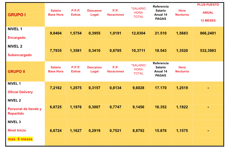 Tablas salariales del Convenio estatal del sector de Elaboradores de productos cocinados para su venta a domicilio (PRODELIVERY):