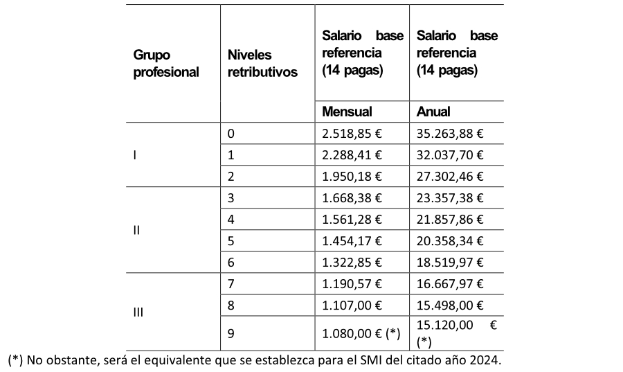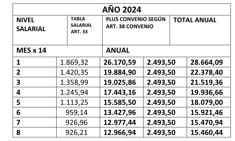 A continuación, os dejamos las tablas salariales para 2024: