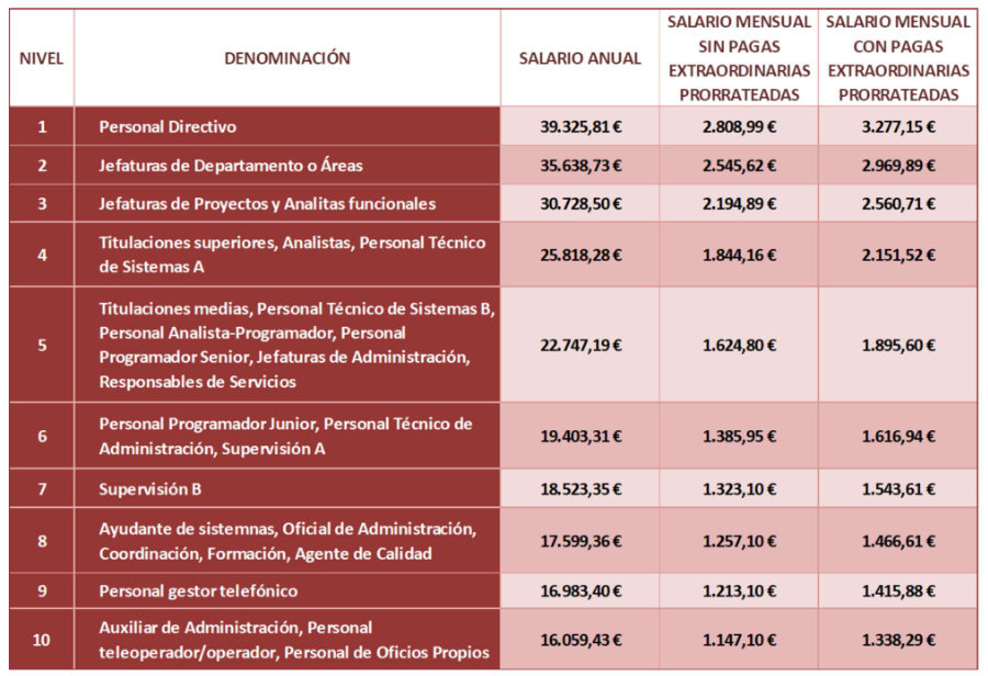 Puedes consultar las tablas salariales publicadas en el BOE pinchando AQUÍ