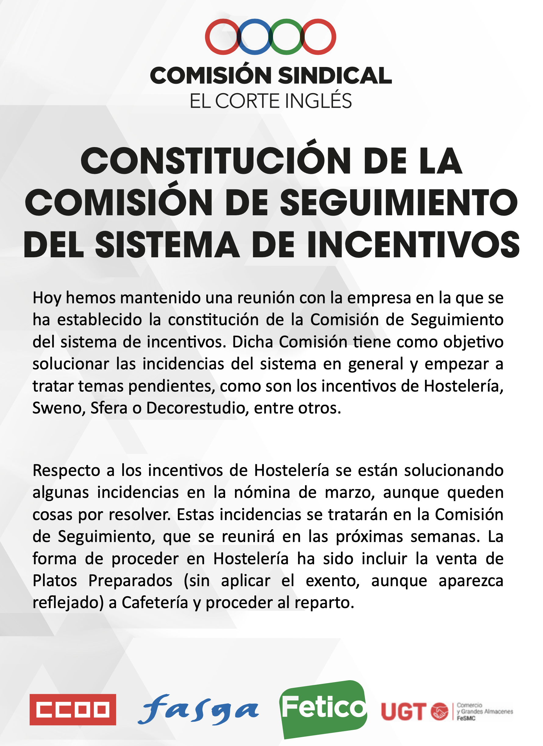 Hoy se ha mantenido una reunión con la empresa en la que se ha establecido la constitución de la Comisión de Seguimiento del sistema de incentivos.