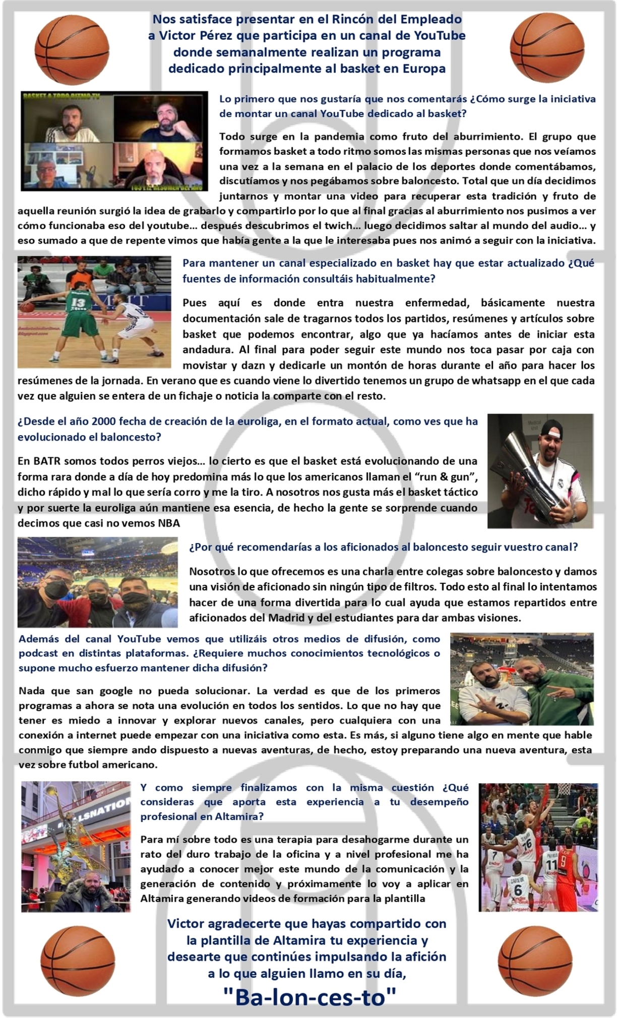 Viviana, lo primero, agradecerte que compartas con tus compañeros en Altamira este proyecto que, sin duda, nos demuestra que es posible compartir los desafíos personales con el apoyo desinteresado a causas solidarias como tu reto en la lucha contra el cáncer.