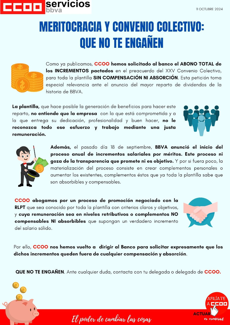 - El pasado día 9 de octubre, nos personamos en la Audiencia Nacional para celebrar el juicio por la demanda interpuesta por CCOO, a la que se han adherido el resto de sindicatos, para exigir a Unicaja el pago de los incentivos del 2023.