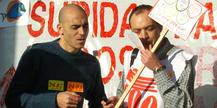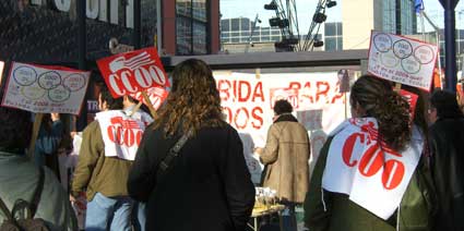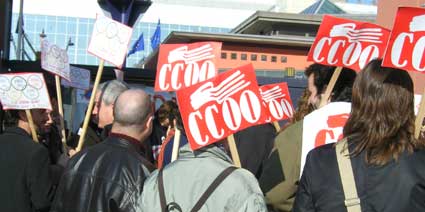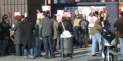 de representantes sindicales ante la sede de ATOS ORIGIN en el centro