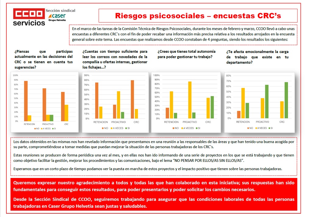 En todas las reuniones de los CSS y en la reunión de ayer del CSSN, además, desde CCOO hemos hecho especial énfasis en que se paren las prácticas actuales que ponen en peligro a nuestras personas trabajadoras como son: