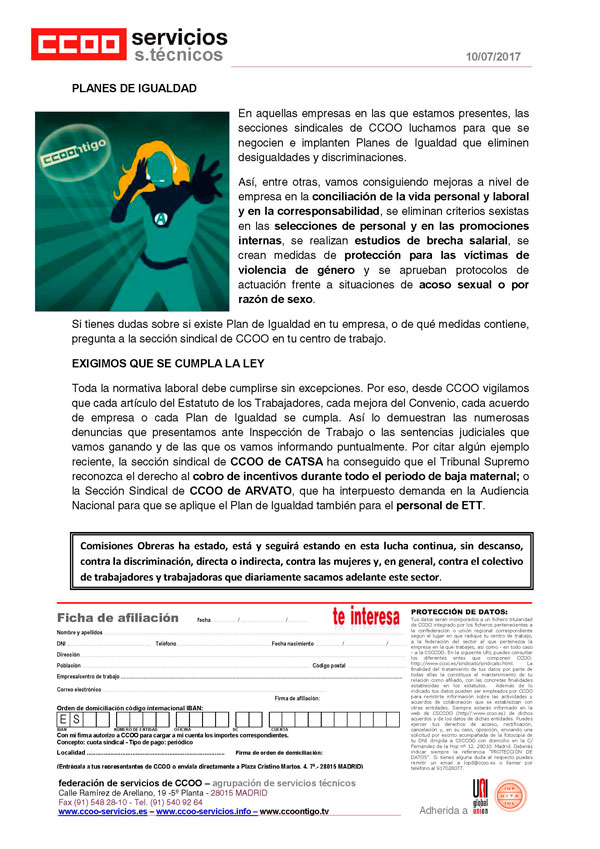 sindical lleva implícita la lucha por la igualdad de género, lo que se traduce en